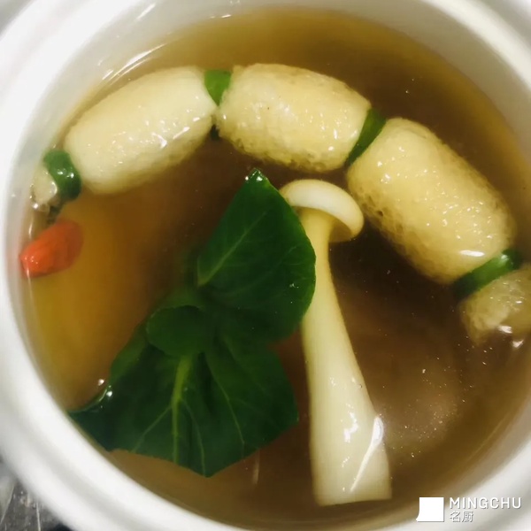 这道菜来源于自己的突发灵感,鱼茸,猪肥膘,再加入老母鸡汤竹荪一起煲汤,入口鲜香浓厚,汤色清而不寡!
