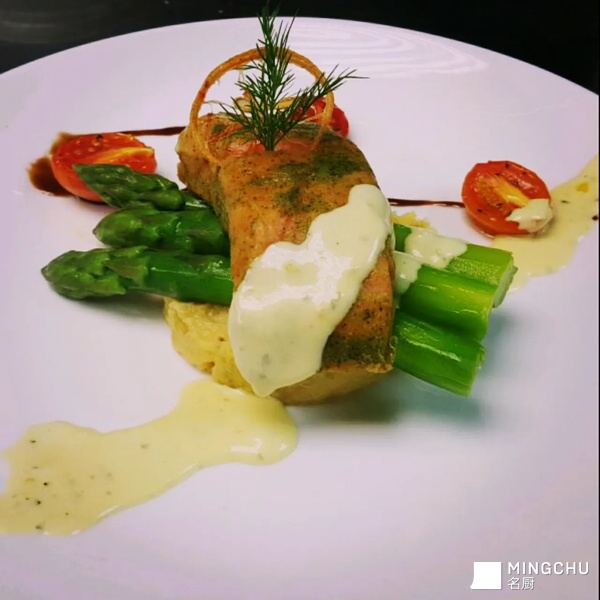 43°度慢煮挪威鮮三文魚配新鮮蕃薯蓉/芥末白油牛奶汁