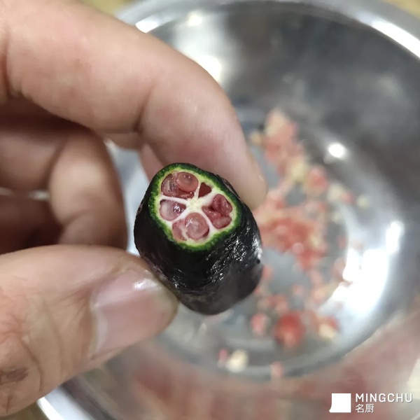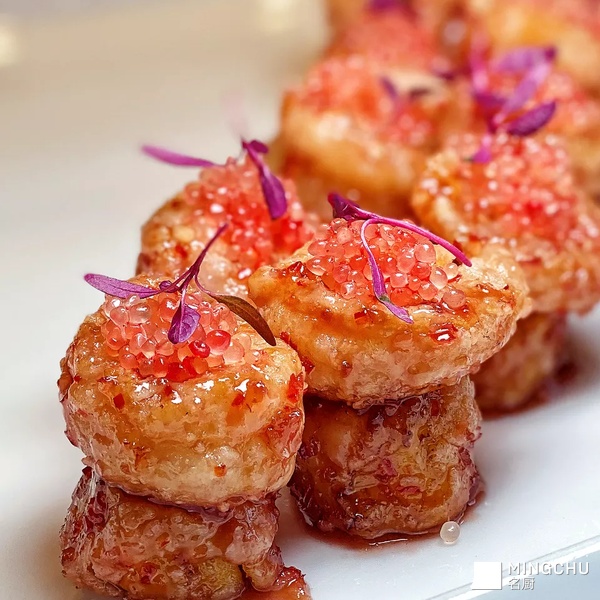 来自高山和深海的两个野生食材,配搭上澳洲指橙,是个巧妙的天合之作。鲜上加鲜,嫩上加嫩;两鲜齐美。做法非常的粗矿张驰又透着大气和幽美。口感是清香幽甜,微酸回辣,鲜嫩无渣。典型的荔枝味和鱼香味是异曲同工。