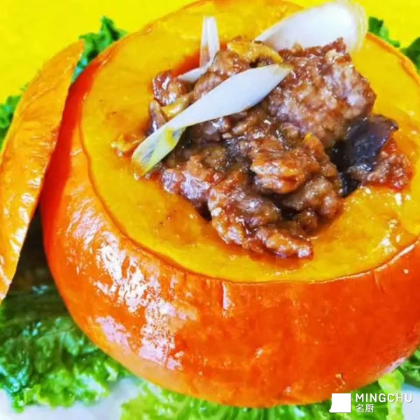 金瓜一个,牛柳250克,鲜 香菇150克,大葱50克,拍蒜少许…