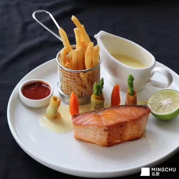 香煎三文鱼配柠檬黄油汁
