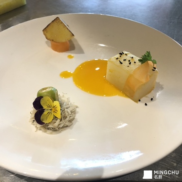 1.这道菜底汁可换成照烧汁配香煎鳗鱼,酱汁需要向中间偏移一些,配菜需更加紧凑,土豆和胡萝卜需换成土豆榄(技能加分点),白萝卜碎可换成胡萝卜碎加青柠碎加白萝卜碎而后叠加多些,其上挤上沙拉酱,点缀三色堇,使其元素多样,兼具立体感