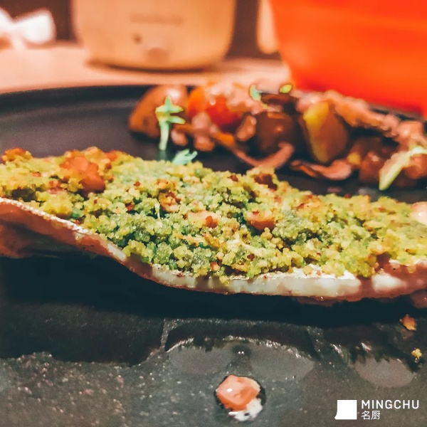 这次把平时的低温,换成了香煎,味道风味还是挺浓郁的,入口之际不仅有鲈鱼的鲜味更有核桃的香气。因为材料原因,可以把奶油白葡萄酒汁做成慕斯,少许马恩核桃油,搭配一个白葡萄酒醋鱼子 #核桃油 #鳄梨油 #坚果油 #64期试用