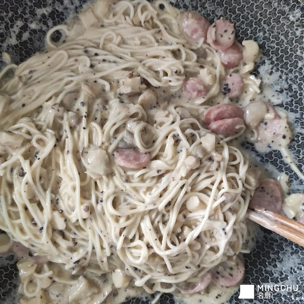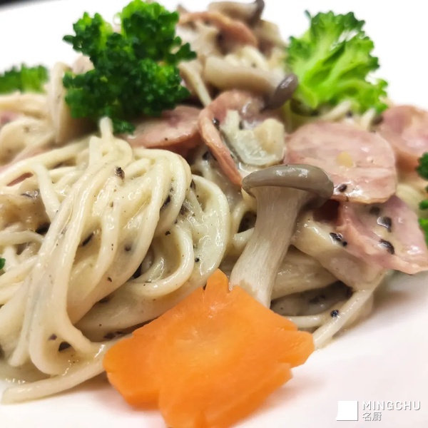 高端的食材搭配平庸的面条,随手取材,身边容易获得的食材做一个平庸不起眼但是非常好吃营养实在的主食或点心。妈妈做的肉肠的加入,有了肉的味道,结合黑松露就没那么怪了。更好吃了 #曾味 #松露酱 #松露油 #66期试用