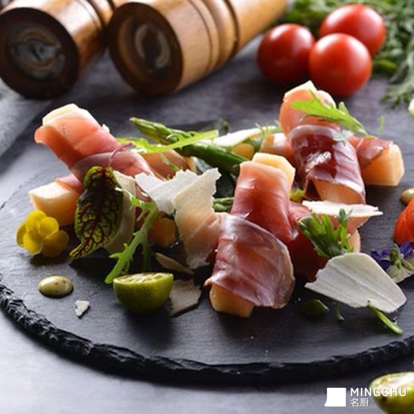 西班牙帕尔马火腿片卷蜜瓜冷拼