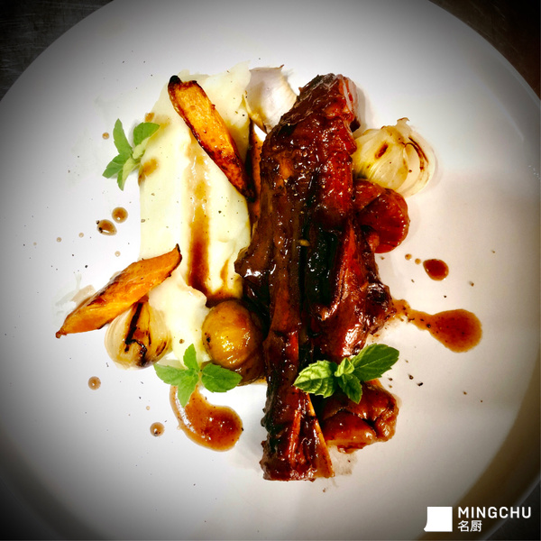 法式红酒炖羊小腿配土豆泥 烤蔬果