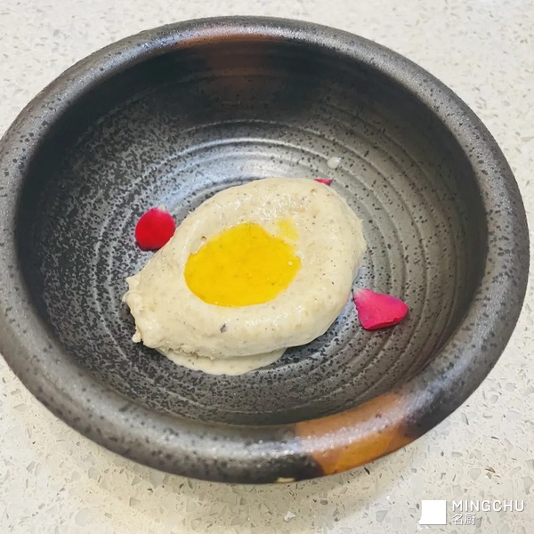 米在亞洲人飲食可說習以為常,但百種呈現方式,卻少有出現在甜點上,這次選用現代健康飲食中流行的糙米做成的冰淇淋,對於口感香氣上更加凸顯米味,也相對健康,在搭配苦茶油的香氣平衡冰淇淋的甜。