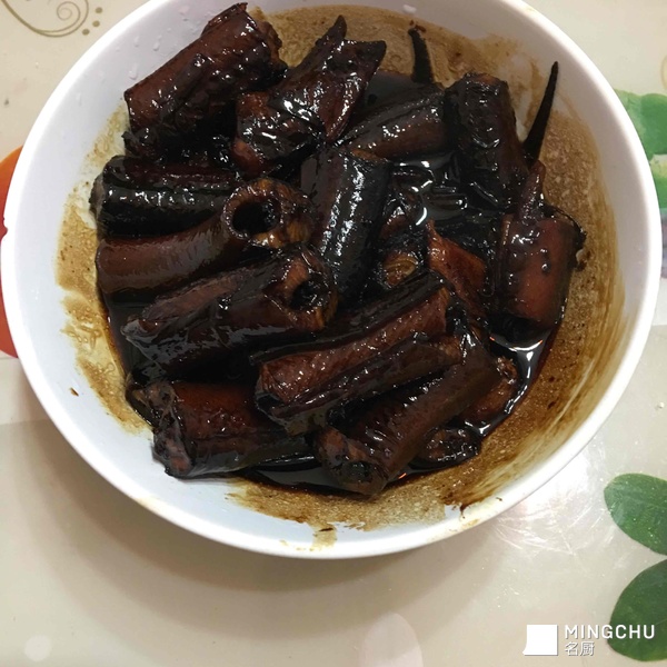 材料:黄鳝、黄酒、老抽、沙糖、淡水、葱、生姜、食用油。做法:把黄鳝宰杀后、去处内脏洗净,用剪刀剪成段状待用。把葱、姜洗净,葱切成段,姜切成薄片待用。往碗中倒入老抽少许、黄酒少许、沙糖三分之一碗,加淡水(热水)并调匀。 往锅内倒入食用油,开大火把油烧热后,往油锅里加入切好的姜片和葱段,煸炒至发黄后捞出葱姜。再往油锅内倒入切好的鳝筒(段),开文火煸炒至金黄色,加入黄酒少许。再把调好的老抽汁水倒入锅內,开文火烧至汤滚,再开小火烧到汁水收干,即可装碗上桌。