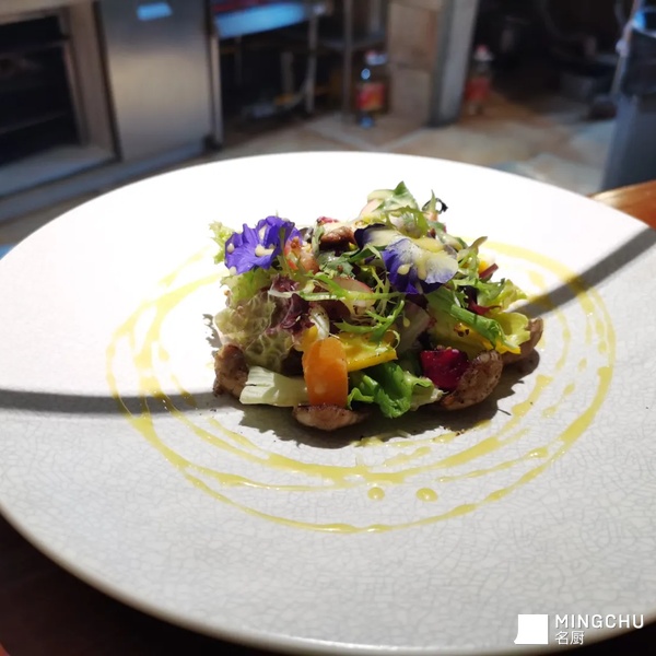 德国香肠的咸香,搭配蔬菜,在佐以黄芥末汁。