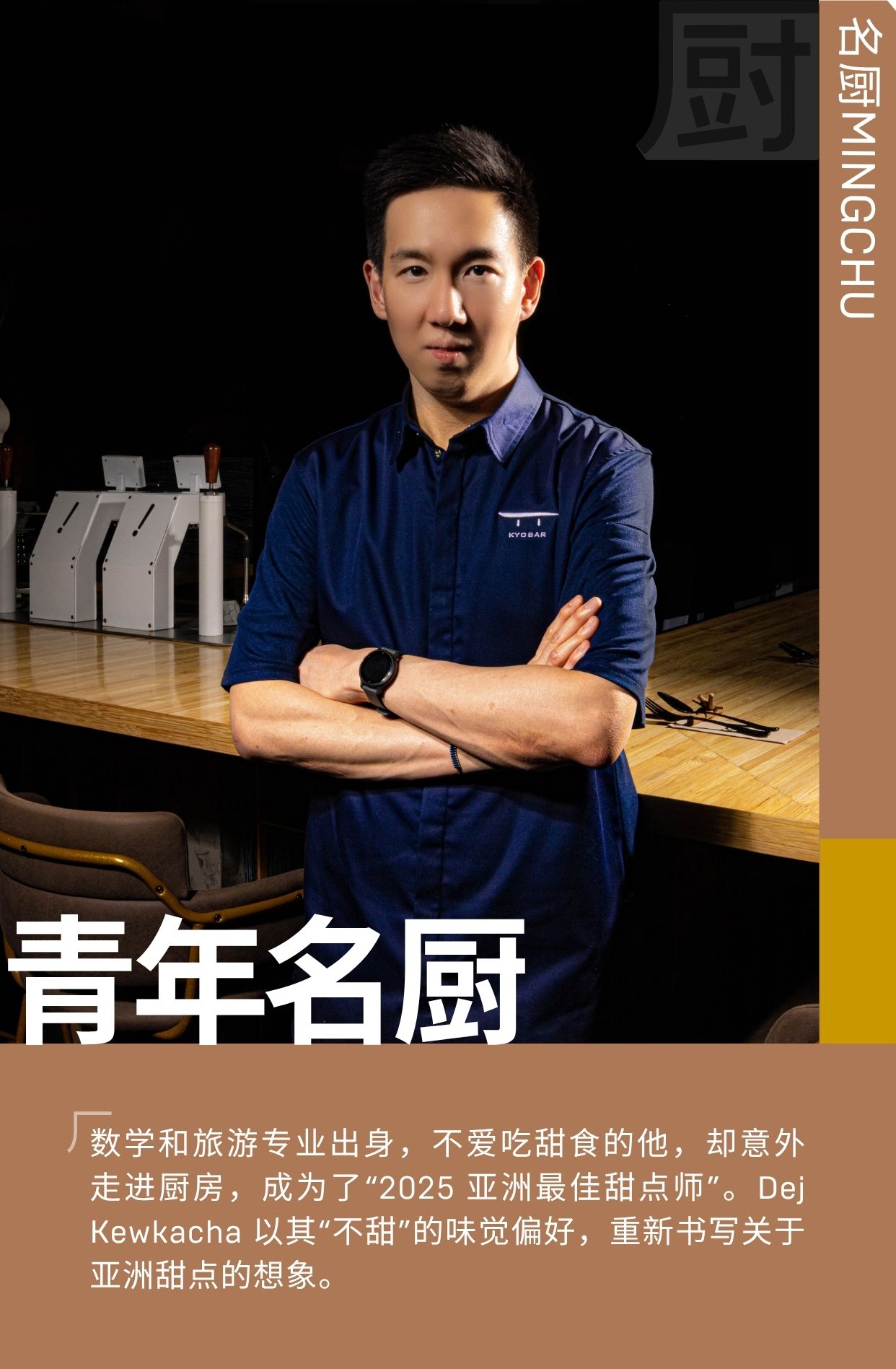 从冰淇淋小店到米其林餐厅,从泰式风味到全球舞台,Dej Kewkacha 用甜品讲述着“不甜”的故事。它们可能带着辣、咸,甚至一点点冒犯,却让味蕾重新感受惊喜,推翻你关于“甜品”的定义。