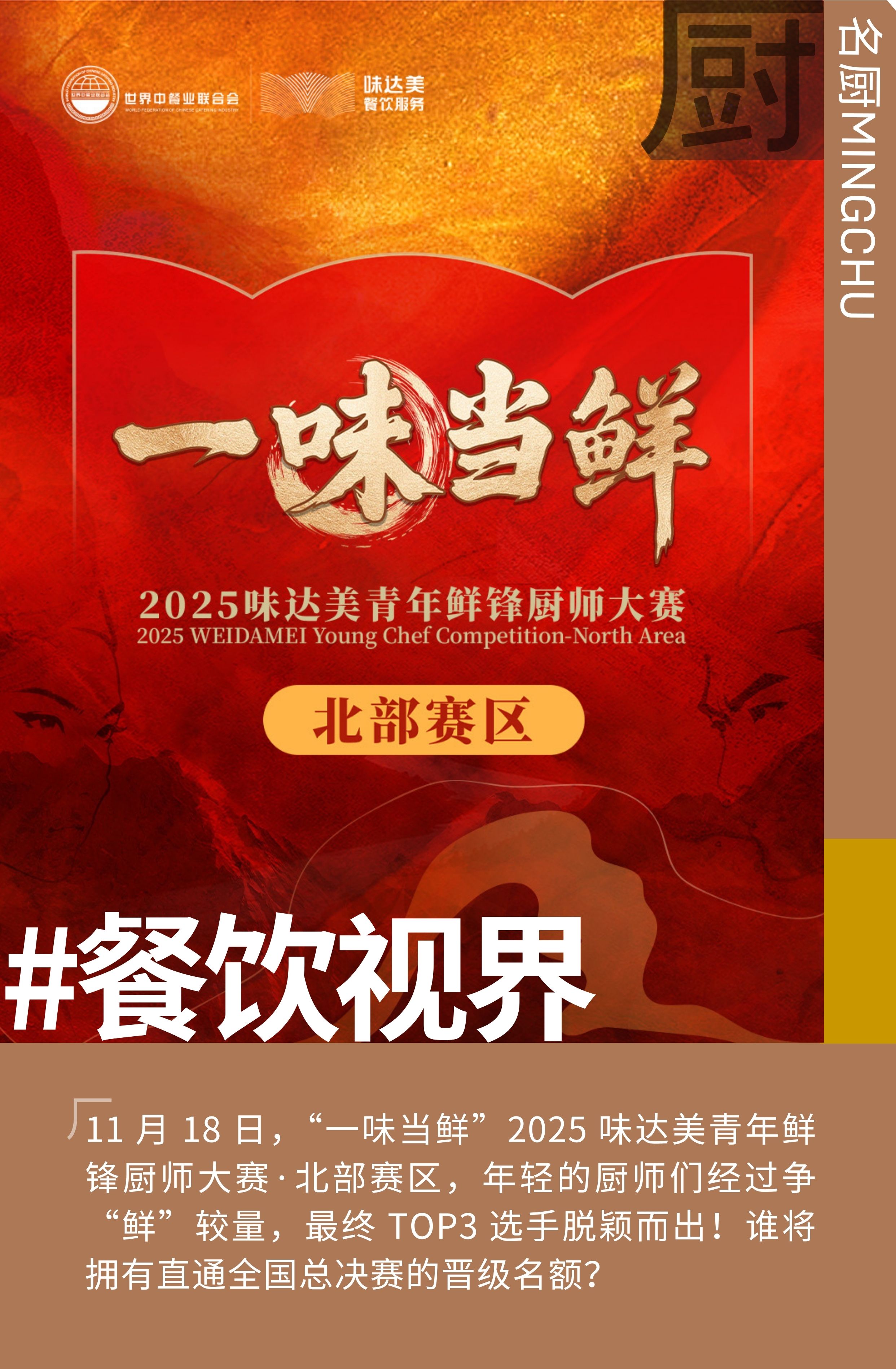 专业、质感、竞技、温度,味达美餐饮服务联合世界中餐业联合会主办、「名厨MINGCHU」 作为官方媒体合作伙伴的“一味当鲜”2025 味达美青年鲜锋厨师大赛,不只是一场厨艺比赛,更是一场关于未来餐饮的先锋对话。