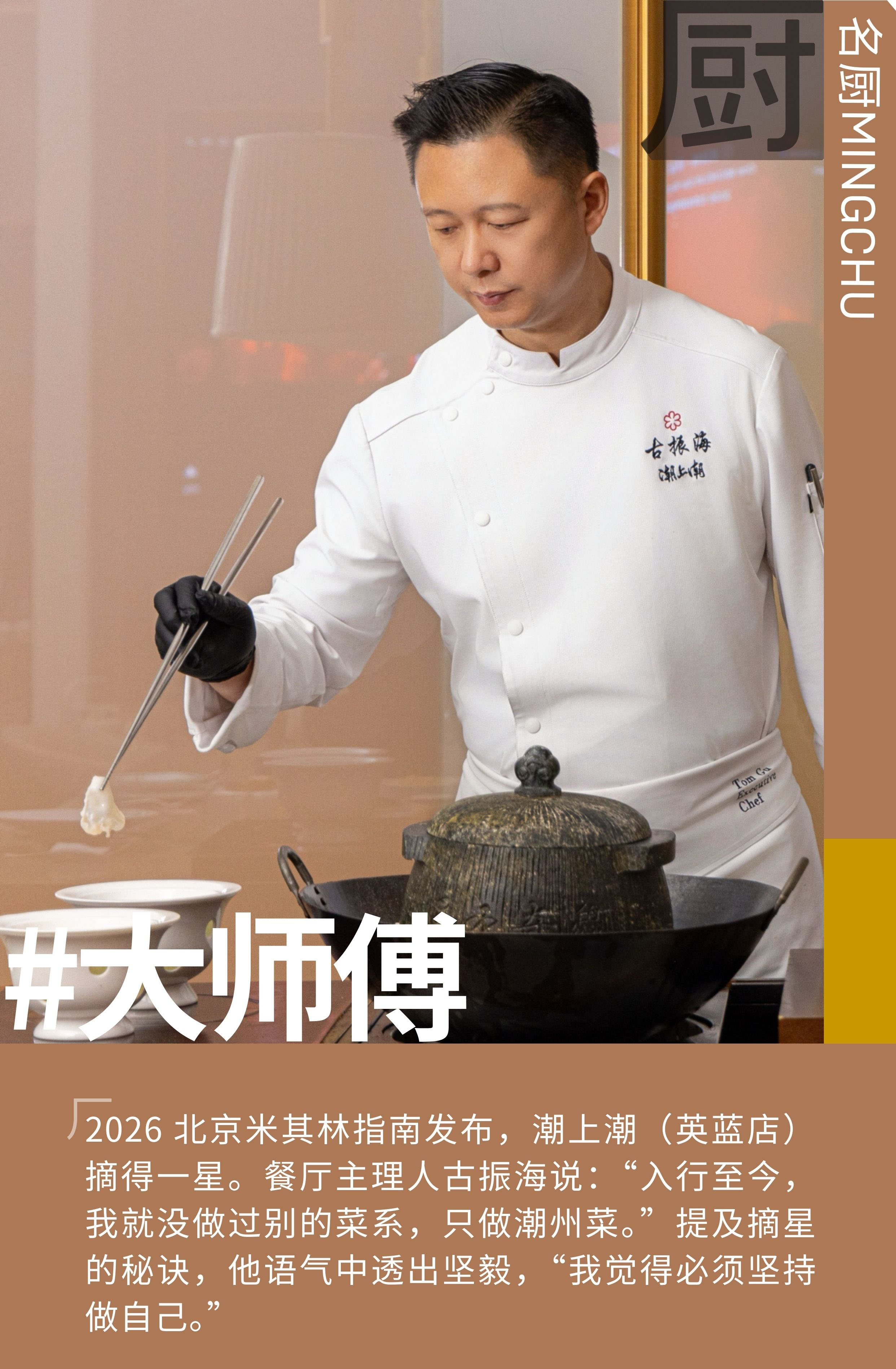从潮汕小城到北京米其林餐厅,古师傅走了一条垂直而专注的路。在这条路上,他守着传统的根,迎着创新的风,在人间烟火中找到了自己的温度要领。而这一切,最终都归于最朴素的愿望:让每一位客人,品尝到最时令、最地道、最有温度的那一口潮汕风味。