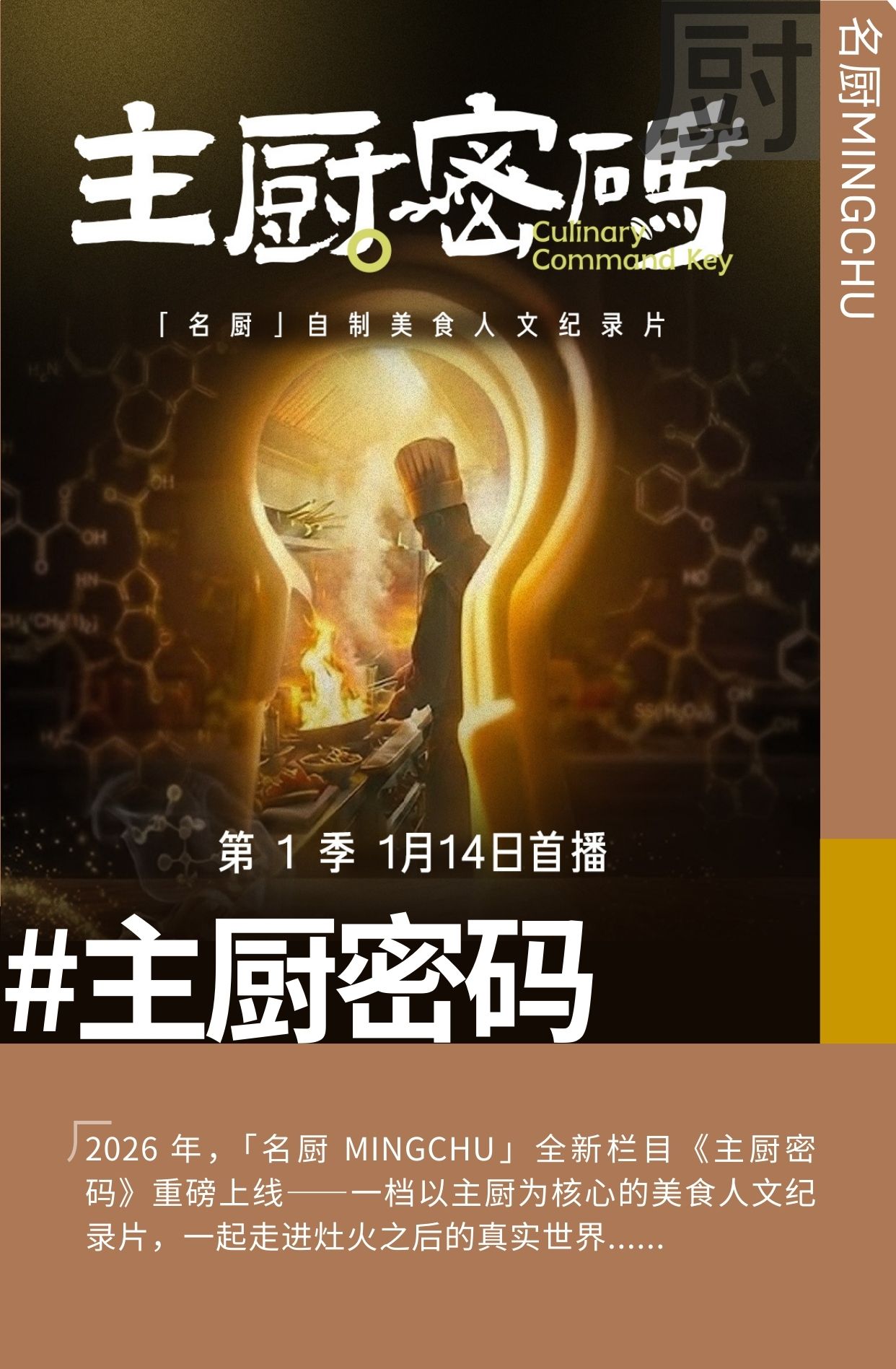 2026 年,「名厨 MINGCHU」全新栏目《主厨密码》即将开启。这是一部以主厨为轴心的美食人文纪录片。我们将镜头交还厨师,走进他们的厨房与城市,为每一位烹饪者留存一段真实的影像。