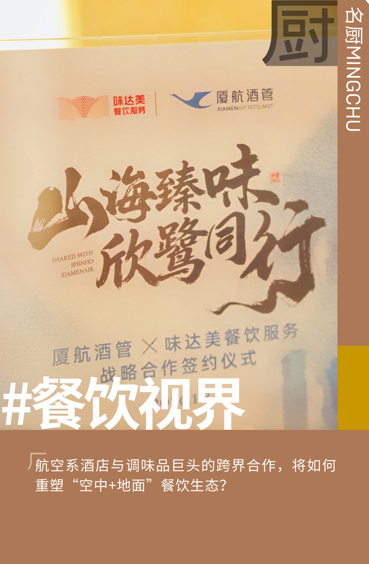 在活动与晚宴的间隙,欣和味达美餐饮服务事业部大客户总监崔鸿伟先生为「名厨 MINGCHU」更深度地解读了双方合作的意义。欣和从“供应链支持者”转变为“餐饮生态共建者”,以服务的意识参与其中,从客户的需求出发,个性化地提供解决方案,从而达到双赢。“这次和厦航酒管的合作有非常多具体、可突破的餐饮场景。在酒店方面,不论是中餐厅、自助餐还是美食节,在调味品的应用方案上都可以提升。在空中,飞机餐一定有复热的要求。像味达美冰糖老抽,复热也不会发黑,始终保持红亮,进一步提升客人的体验。欣和与厦门航空同为米其林指南中国大陆的合作伙伴,我们也希望将积累的餐饮经验进一步赋能,理念同频,共同进步。在未来,以此次合作为标杆,与更多国内和国际的机酒企业合作共创,构建全新的生态。”