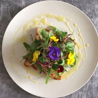 鹅肝慕斯,山楂薄片,炙烤洋葱,南瓜凝胶及酸奶泡沫