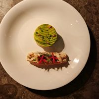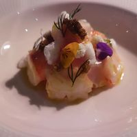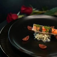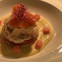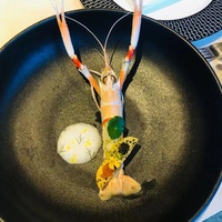 红魔虾,蟹肉,10年生鱼子酱,酸奶油泡沫,烟熏辣椒酱