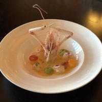 生腌挪威深海鳌虾,伊比利亚火腿,蜜瓜,牛油果,百香果Foam
