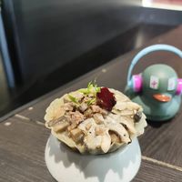 牛肉菌菇塔配烟熏口蘑 香芹苗