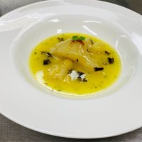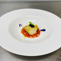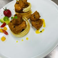 法芥籽酱脆皮和牛、蜂窝脆皮虾酿羊肚菌