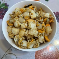 葱油海鲜贝肉,灵感来自于台湾葱油饼。