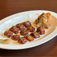 【墨韵陈皮脆颈肉·怪味鎏金】 墨色米香承托脆颈肌理,鎏金酱汁裹藏陈皮陈韵,川粤双味交织,一口解锁舌尖上的雅奢格调。