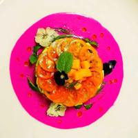 果香鲑鱼塔塔配红心火龙果酸奶油酱