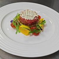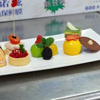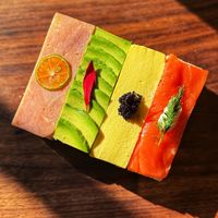 黄鳍金枪鱼薄片包裹牡丹虾塔塔配珍珠西柚