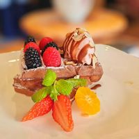 Belgian Waffles with Strawberry Ice Cream and Seasonal Berries