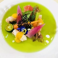 低温三文鱼、芥末蘑菇、橙味南瓜泥、黑松露