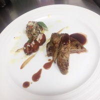 香煎牛里脊风干番茄佐蘑菇塔
