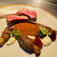 低温慢煮两周干式熟成新西兰羊排/白酒蒜香羊肚菌/辣根白花椰菜泥/芥末籽红酒羊肚菌汁/扒红甜菜头片