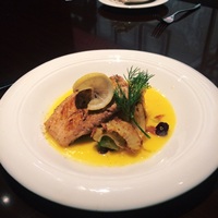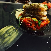 香煎鳕鱼配蔬菜酱和白酒奶油生蚝汁