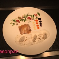 法式烩海鲜。肉眼配黎麦花蜜汁