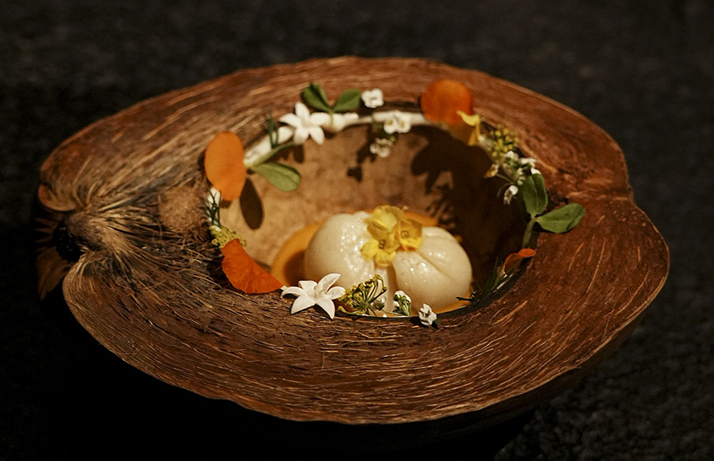 鲜竹荪花带来山野的清香,与蟹肉烩饭搭配在一起,细腻绵软,是山与海的相遇。
