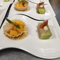 鲜虾芒果挞拼西班牙火腿配蜜瓜