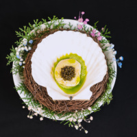 茶香姜汁布丁佐鱼子酱和燕窝